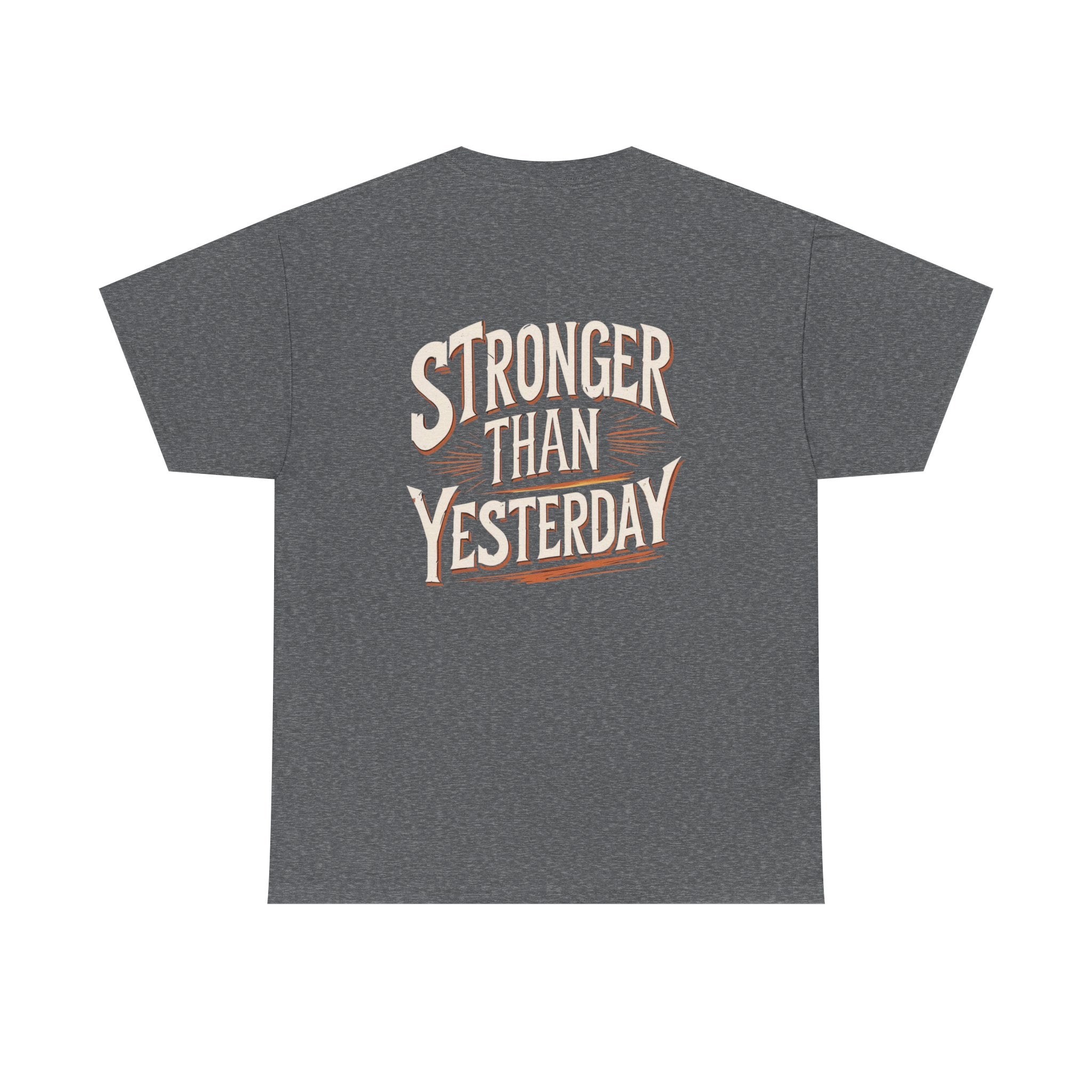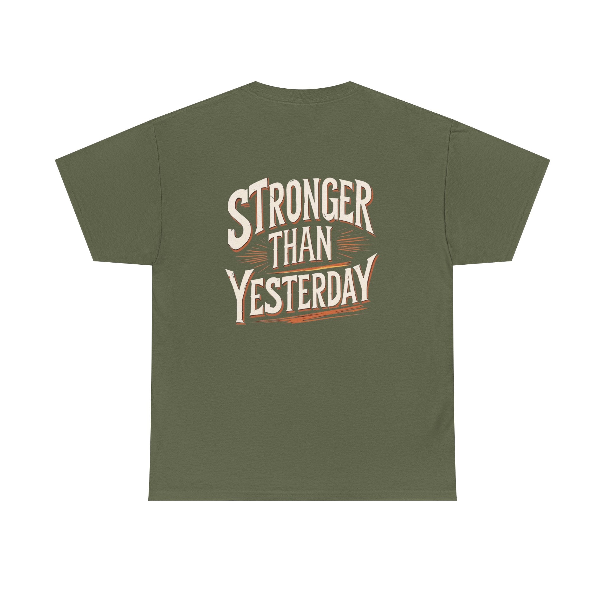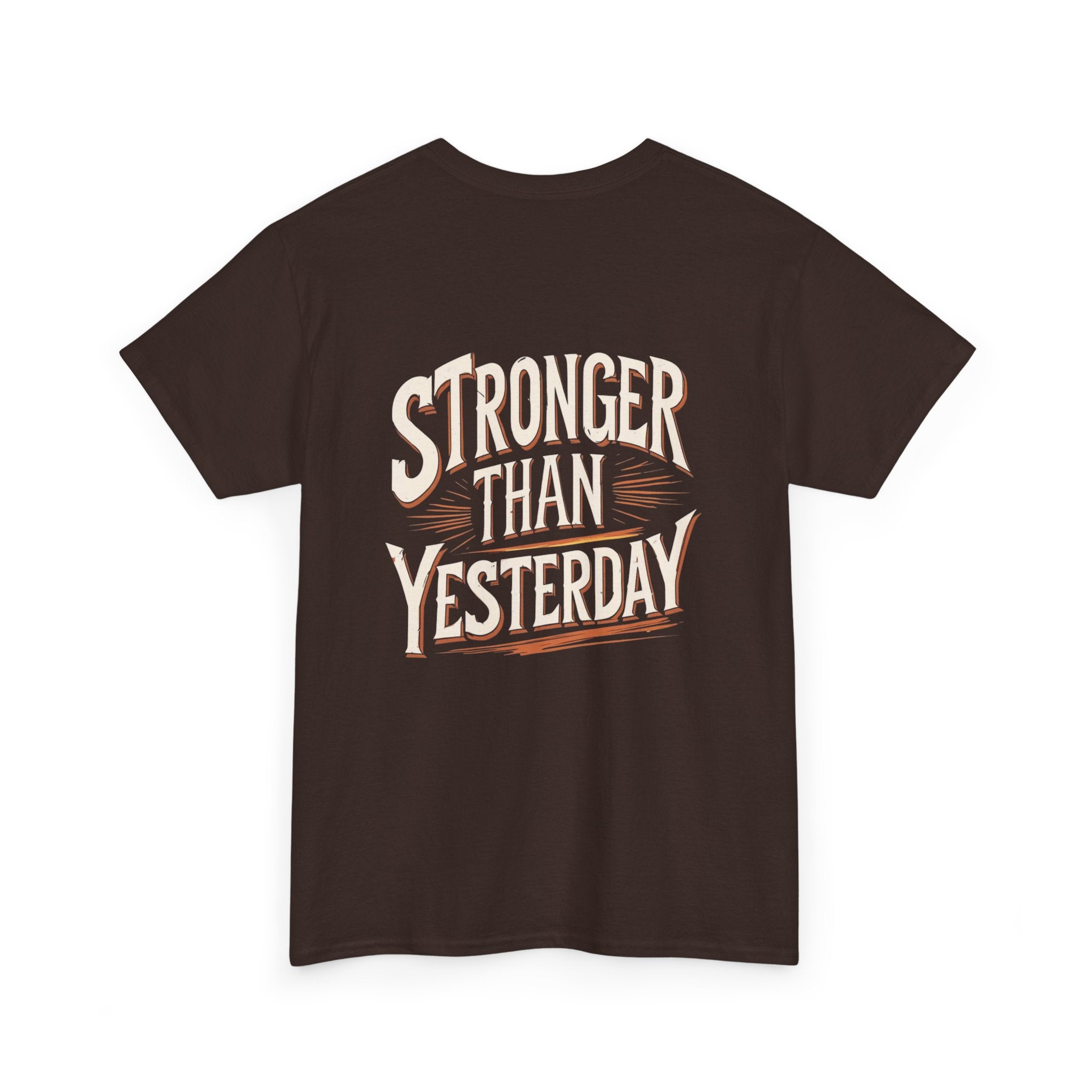 Empower yourself and others with our 'Stronger Than Yesterday' T-shirt. This motivational design serves as a daily reminder to strive for your best self. Made with high-quality fabric, it ensures comfort while you showcase your dedication to personal growth. Perfect for workout sessions, casual wear, or as a thoughtful gift for someone on their journey to self-improvement. Stand out and inspire with this unique tee that resonates with anyone who believes in progress and resilience.